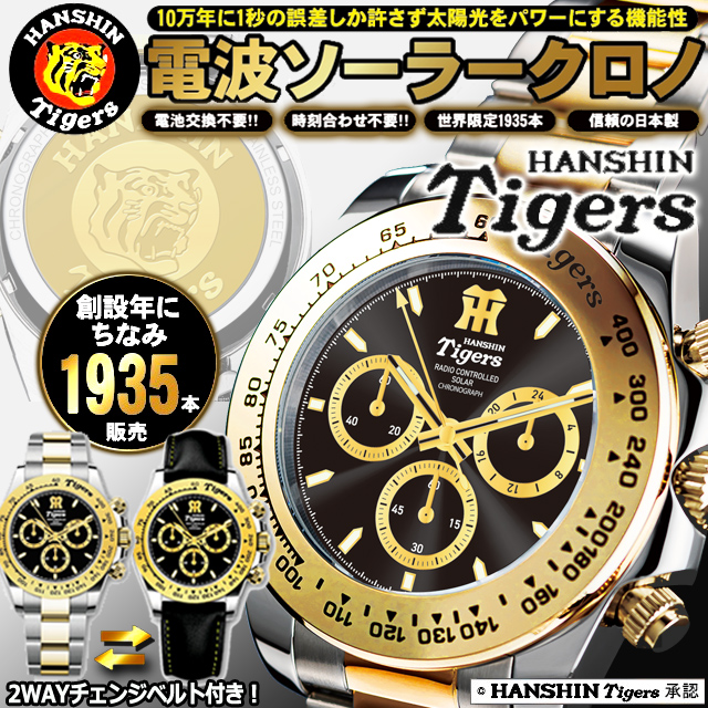 阪神タイガース電波ソーラークロノグラフ Tigers 電波時計 クロノグラフ プロ野球 虎党 トラキチ 腕時計 電波時計 ソーラー電池