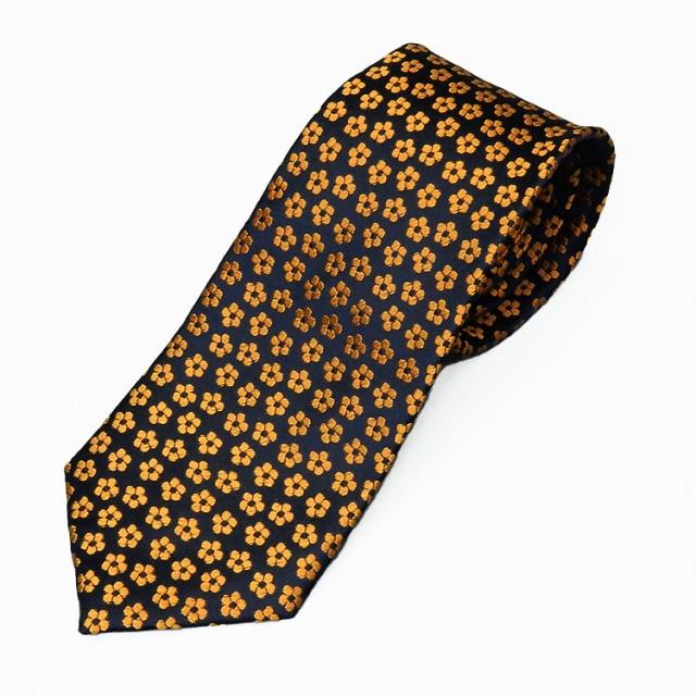 京都西陣織 ネクタイ シルク100% オレンジ×濃紺/花柄 メール便OK NJ-FW05