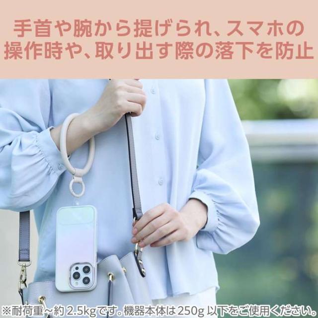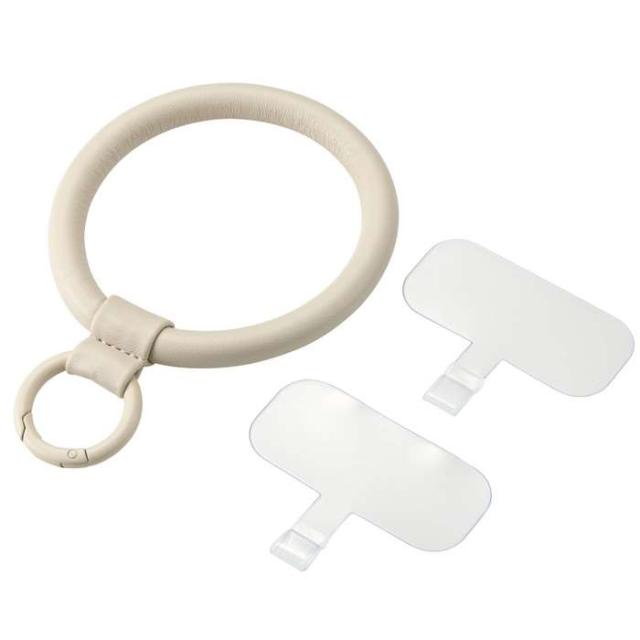 代引不可 スマホハンドストラップ ストラップホールシート付属(2枚) レザーリング &me グレージュ エレコム P-STHPLNGB