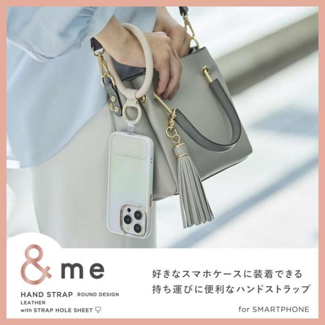 ■もっと、自分だけの「好き」を選びたい。そんな想いに応えるアクセサリーで、お気に入りの毎日を。スマートデバイスと私をつなぐ、&meです。 ■レザーの質感が特徴で、手首に通して使えるリングタイプのスマホハンドストラップです。 ■手首や腕から提げて持ち歩けるので、両手がふさがらずいつでもサッとスマートフォンの操作ができます。 ■スマートフォンの操作時、バッグやポケットから取り出すときの落下を防ぎます。 ■レザーのぷっくりした質感がアクセントでファッションとも相性が良いデザインです。 ■やわらかく手触りが良いソフトレザーを採用しています。 ■ケースにストラップホールがなくても、付属のストラップホールシートをスマートフォンとケースの間に挟むだけで使用でき、取り外しも簡単です。 ■ケーブル穴1口タイプのストラップホールシートが2枚付属しています。 ■ストラップホールシートは簡単に取り外しができるので、ケースを変えても繰り返し使用が可能です。 ■ストラップホールシートを装着した状態でもイヤホンや充電ケーブルの接続が可能です。 ■ケースにフィットする約0.5mmの薄型のストラップホールシートで簡単に装着できます。 ■耐荷重は約2.5kgまでです。 ■※機器本体は250g以下のものをご使用ください。 ■ご使用されるケースの種類は、背面が硬い素材のものを推奨します。 ■ケースは、ケーブル穴がケース底面の中央にあるものが推奨です。ケーブル穴部分が大きく開口しているケースでの使用は推奨しません。 ■自社環境認定基準を1つ以上満たし、『THINK ECOLOGY』マークを表示した製品です。 ■環境保全に取り組み、製品の包装容器におけるプラスチック重量を、社内基準製品より20%以上削減した製品です。