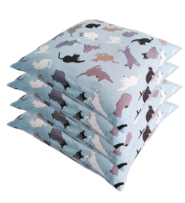 座布団カバー 4枚 組 ネコ 約 55×59 cm ブルー 【 日本製 】 【 銘仙判 】 【 クロネコゆうパケット便対応限定 】 【 フロアークッションカバー 】 55 59