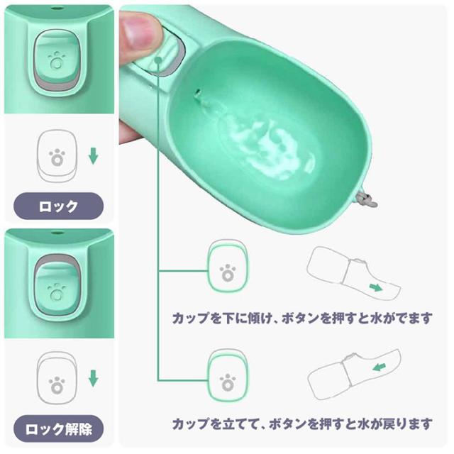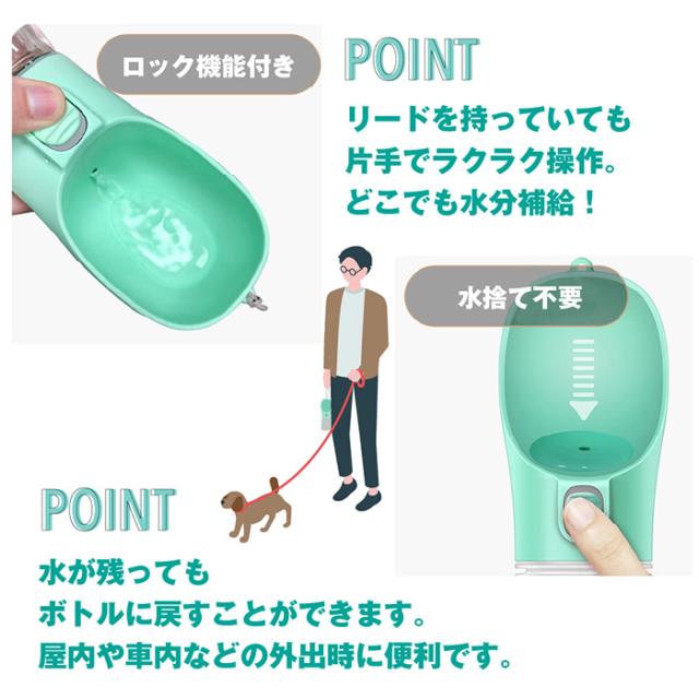 ペットウォーターボトル 2サイズ 3色 ペット 水入れ ワンタッチ 給水ボトル ウォーターボトル 犬 散歩 水飲み エサやり ペット用 水筒 給水器 携帯用 水飲み器 猫 犬グッズ 水飲み 外出 ドライブ 旅行 水分補給 おやつ agesugi_sfp
