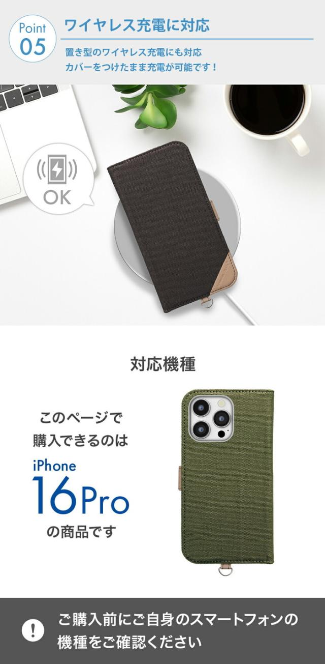iPhone 16Pro iPhone16Pro 手帳型ケース おしゃれ iPhone ケース 手帳型 大人 カバー スタンド スタンド機能 動画視聴 カード収納 ワイヤレス充電 マグネット 磁石 ストラップホール 落下防止 キャンバス キャンバス生地 カジュアル ライトグレー グレー シンプル