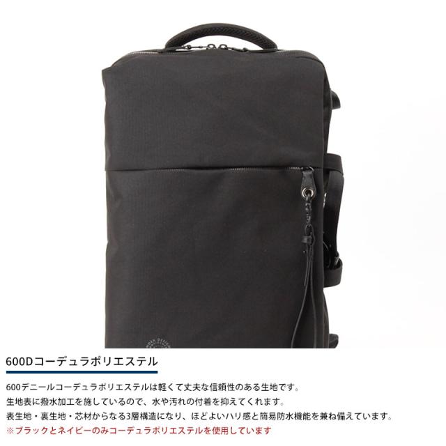 特徴:金具を使わないことにより軽量化を実現した3wayビジネスバッグ。