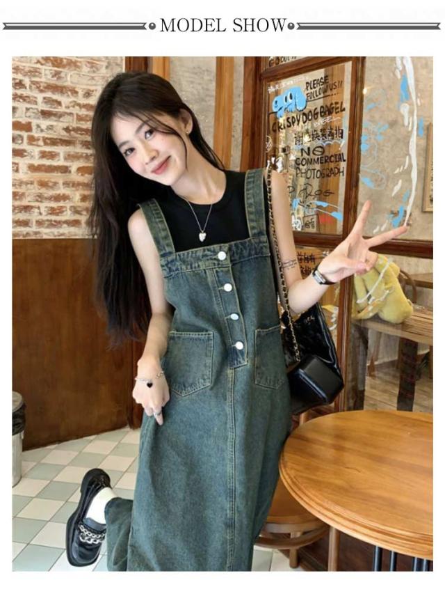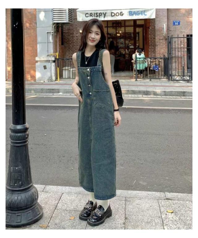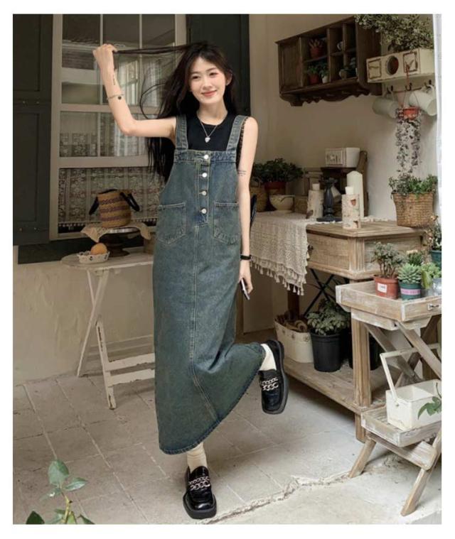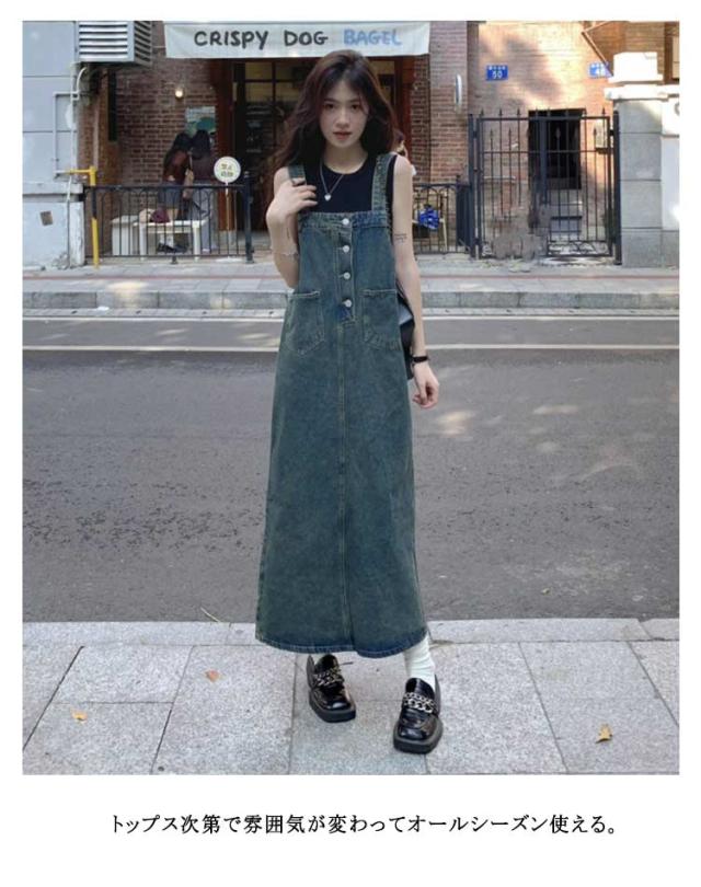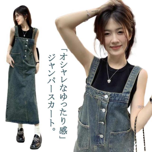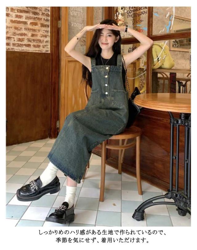 春 レディース ジャンパースカート ロング デニムワンピース 大人 デニムワンピース 夏 秋 大きいサイズ ゆったり カジュアル シンプル 無地 サロペットスカート 体型カバー 着痩せ オールインワン