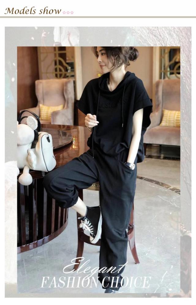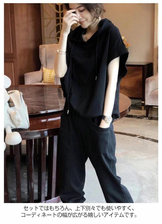 おしゃれ スウェット 半袖 上下セット スウェット レディース 7分丈パンツ トップス ジャージ カジュアル フード付き 秋 着?せ セットアップ 夏 部屋着 パンツ 2点セット 春 着痩せ 大きいサイズ ジョガーパンツ ルームウェア