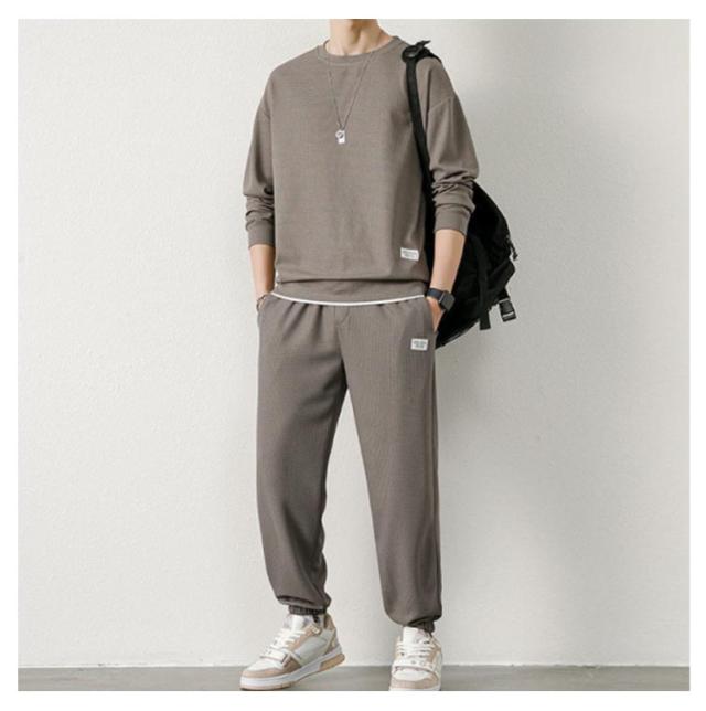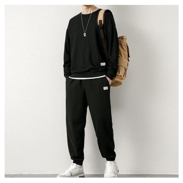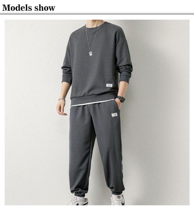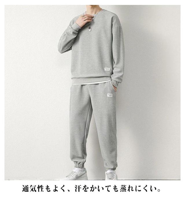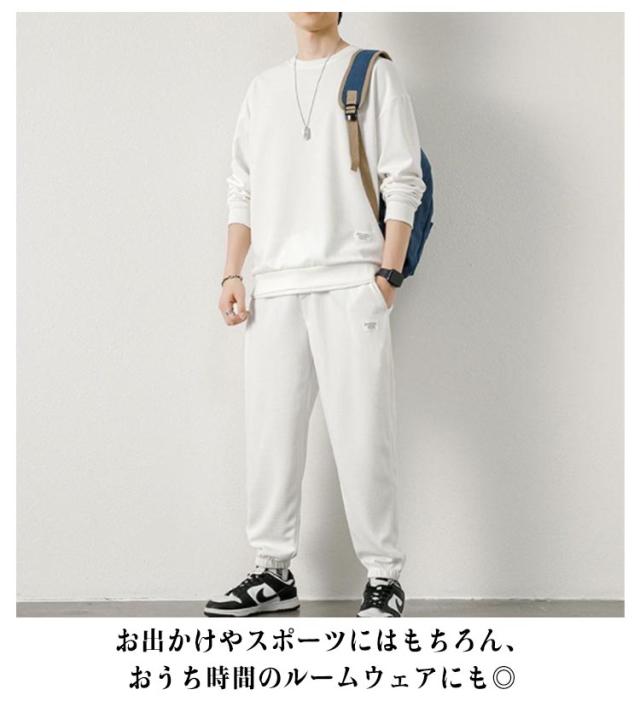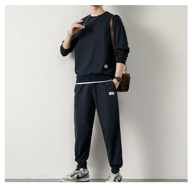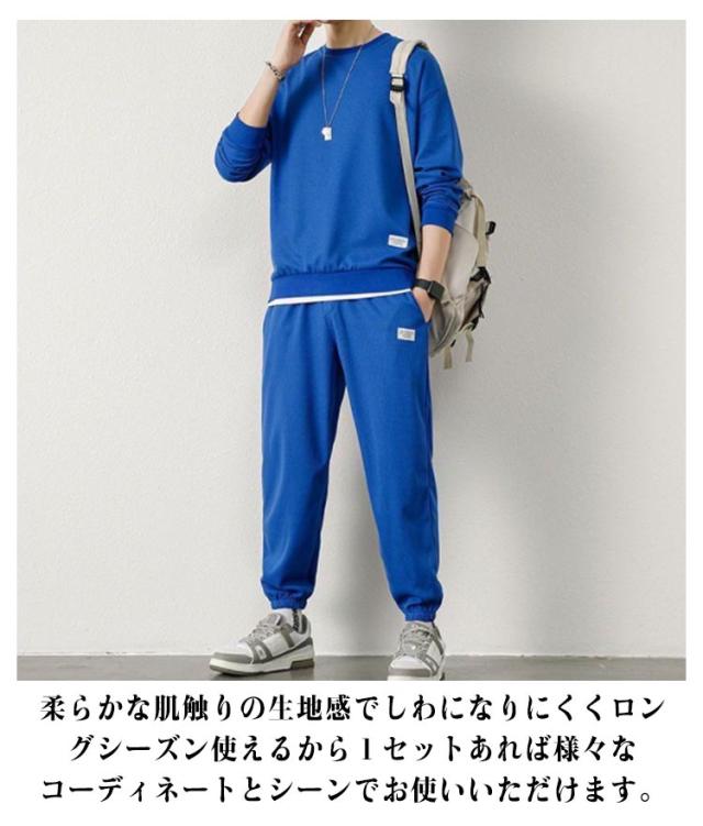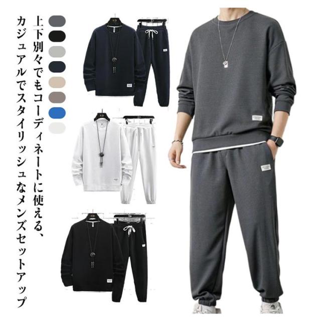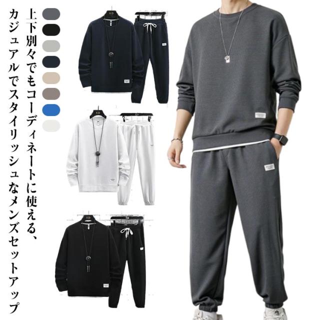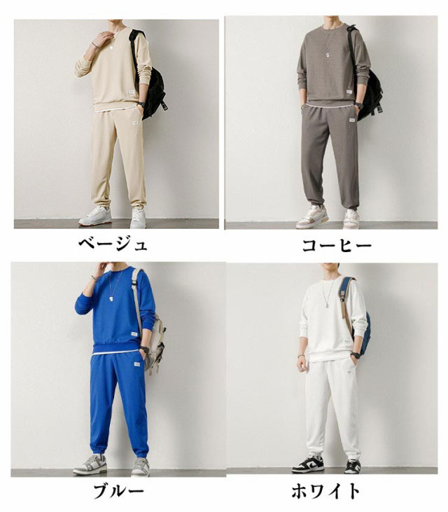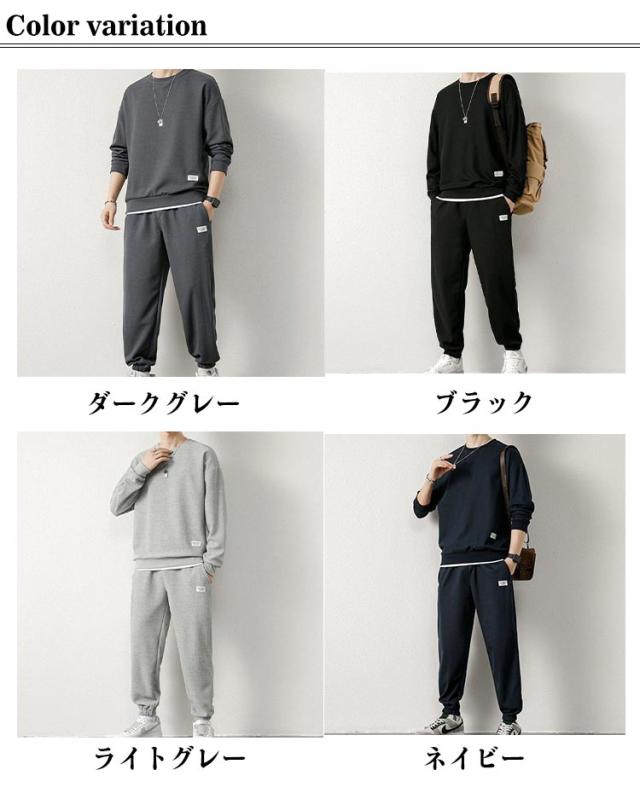 無地 スウェット セットアップ 上下セット メンズ ジャージ ロングパンツ トップス クルーネック 長袖 トレーナー 重ね着風 スポーツウェア 春秋 セットアップ 春物 秋服 運動着 部屋着 スポーツウェア ジョガーパンツ 大きいサイズ