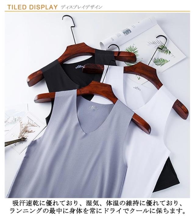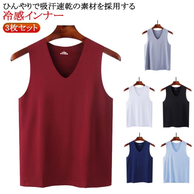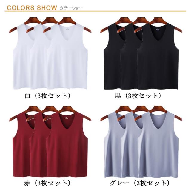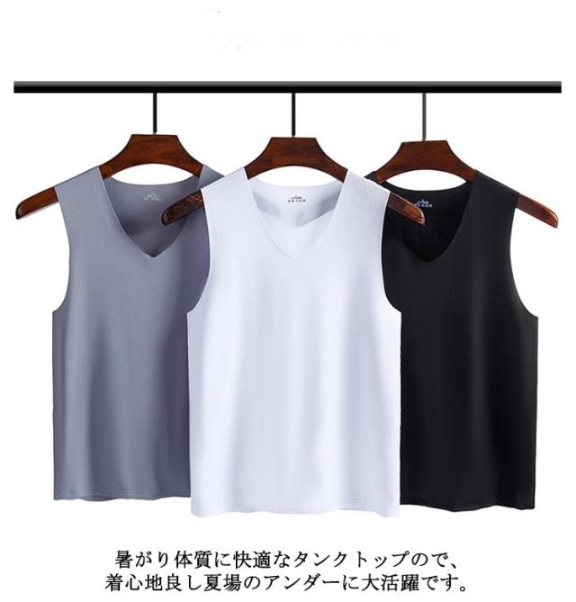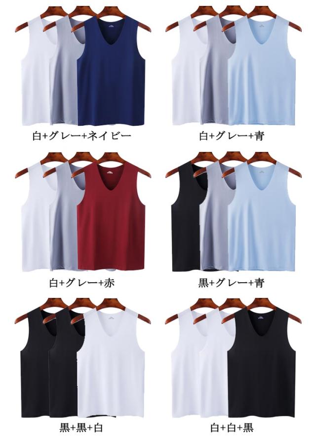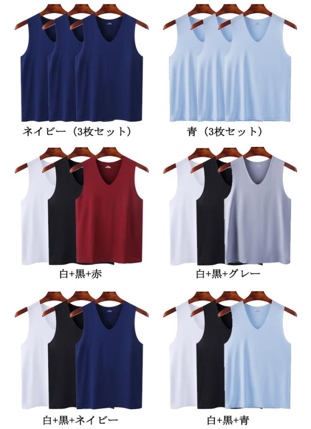 シームレス 春夏 メンズ タンクトップ 通気 接触冷感 Vネック 3枚セット! インナーシャツ 吸汗速乾 ストレッチ 肌着 ノースリーブ tシャツ ひんやり 涼しい 薄手 夏 3枚セット! アンダーウエア レイヤード 重ね着 スポーツ トレーニング 大きいサイズ