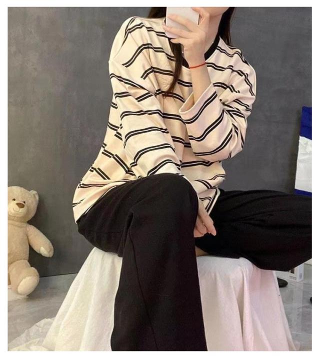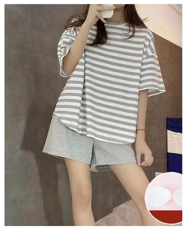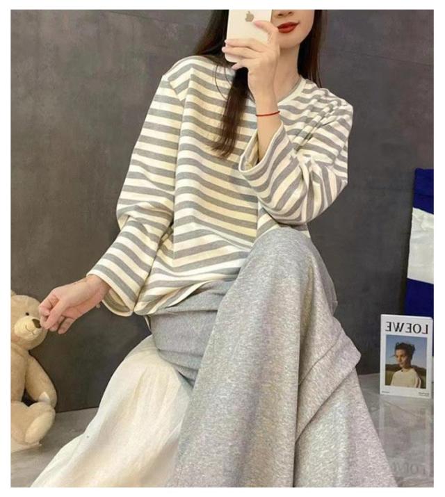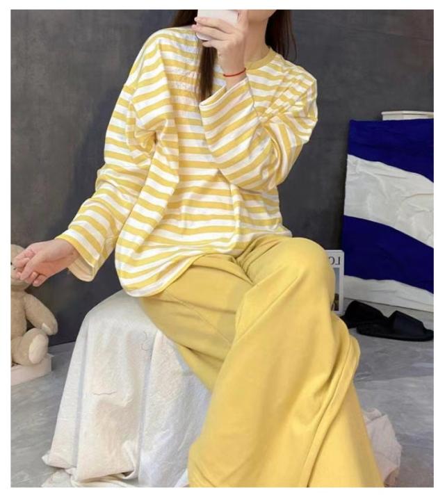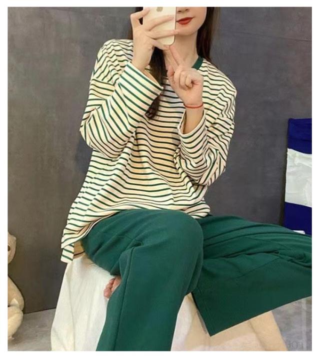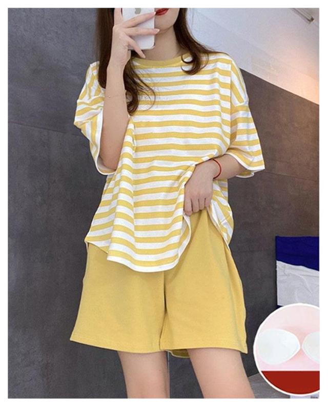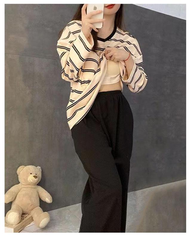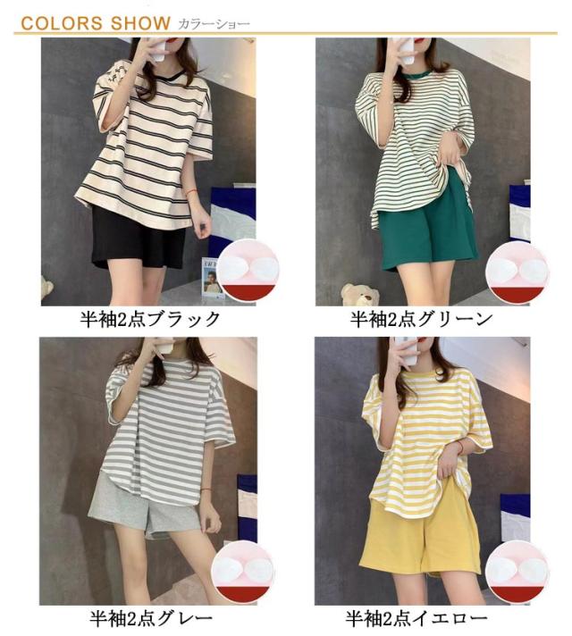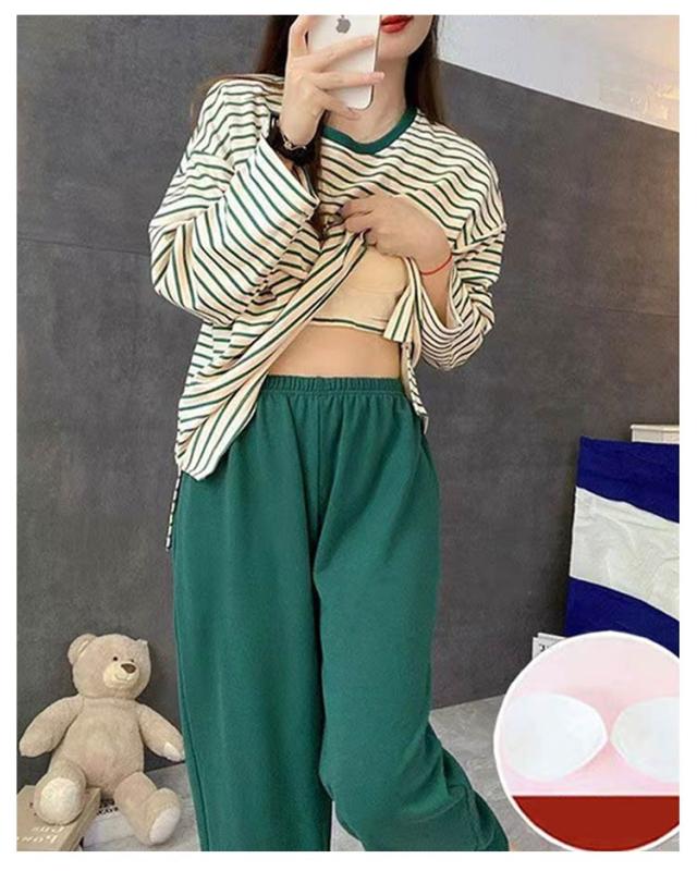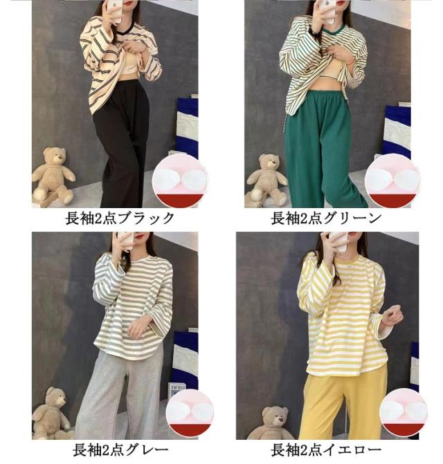 Tシャツ 婦人用 長袖 カップ付き レディース ナイトウェア ルームウェア ロングパンツ リラックス パジャマ パジャマ 寝巻き レディース ボーダー柄 2点セット カップ付きパジャマ 上下セット 部屋着 寝間着 可愛い 通気性 柔らかい 女性用 パジャマ 母の日