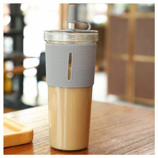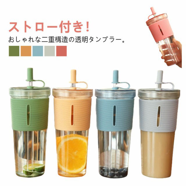| ストロー付き!おしゃれな二重構造の透明タンブラー。 二重構造のボトルは、氷が溶けにくく冷たさを長くキープします。 蓋とストローカバー付きタイプで、ごみやほこりが入るのを防ぎます。 タンブラーに手にフィットして持ちやすい滑り止めのシリコンカバーを装着しました! 中身が見えるクリアボトルでフレーバーウォーターやハーブティー、ジュースなどをおしゃれに持ち歩くことができます。 | |