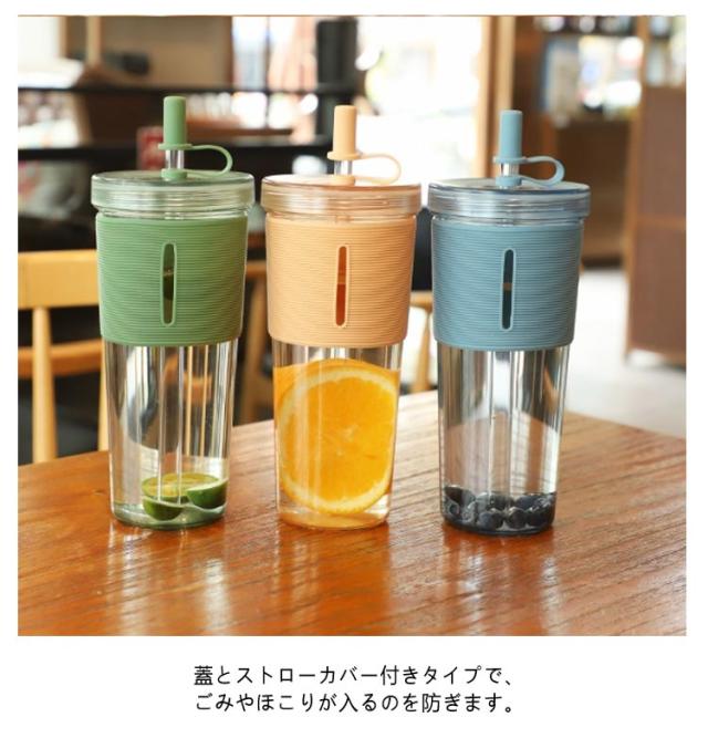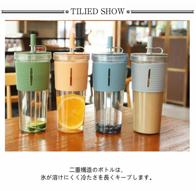 2層構造 ボトル 700ml おしゃれ 水筒 持ち運び ストロー付き マグボトル タンブラー ストローカバー付き 漏れない クリアボトル 透明 ジュース コーヒー 蓋付き タンブラー 大人 子供 アウトドア ユニセックス シンプル かわいい