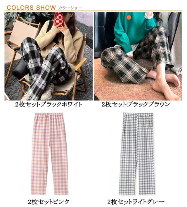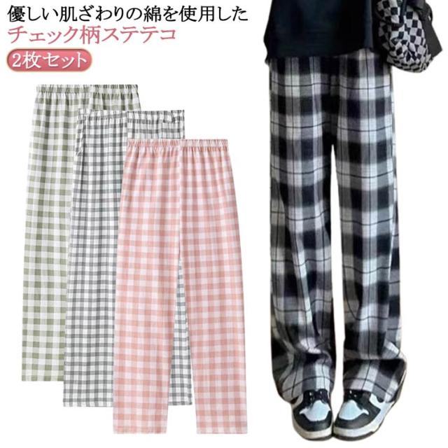 春夏 ステテコ チェック柄 部屋着 下着 ポケット付き レディース ズボン ゆったり ルームウェア ルームパンツ ルームウェア コットン おしゃれ ひざ下丈 2枚セット 大きいサイズ シンプル 涼しい