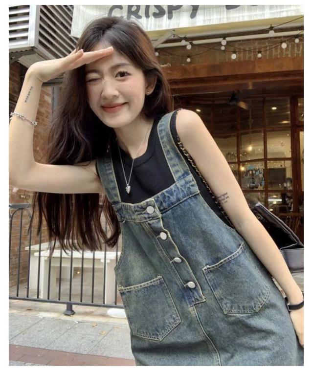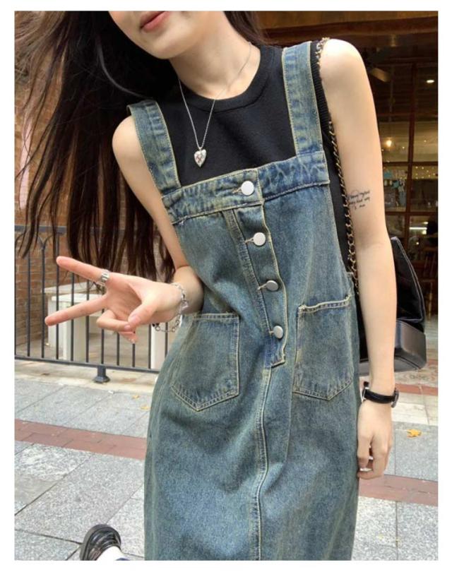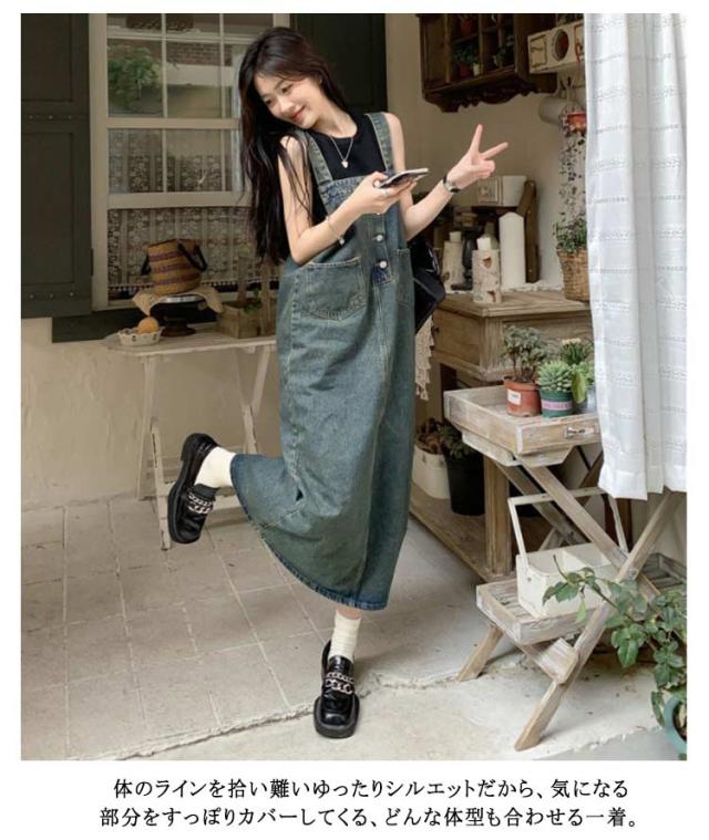 デニムワンピース サロペットワンピース レディース 大人 ロング 夏 春 ジャンパースカート 秋 着痩せ 大きいサイズ カジュアル シンプル 無地 ゆったり 体型カバー デニムワンピース オールインワン