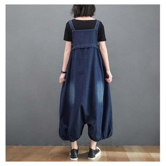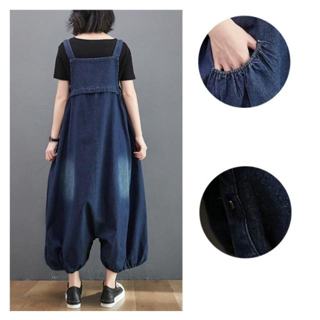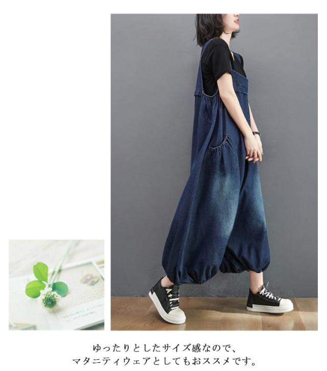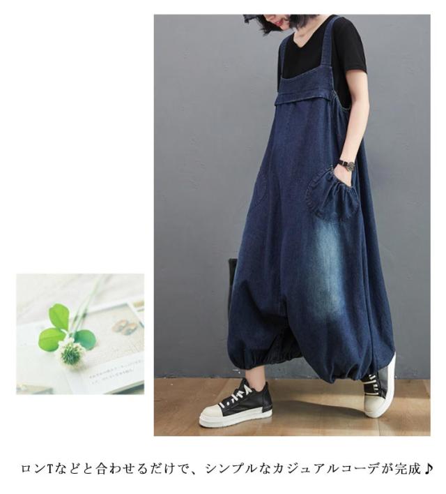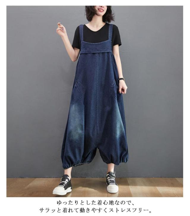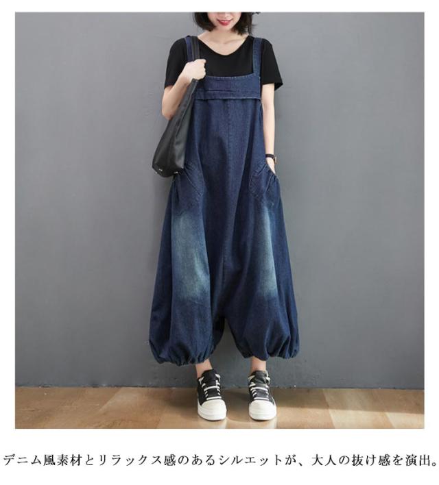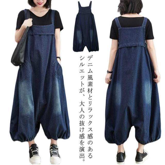 レディース シルエット ボトムス バルーン ビッグシルエット オールインワン サロペット オーバーオール サルエルパンツ 体型カバー マタニティ ルームウェア デニムパンツ パンツ オールインワン 絞り裾 無地 作業着