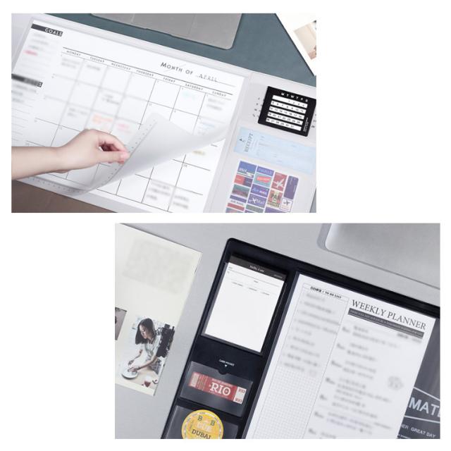 | 取り外し可能・永年使えるカレンダー付き! 多機能デスクマット 32×70.5cm大判 マウス対応/滑り止め加工/目盛り付き 1.デスクパッドの各エリアはそれぞれの収納力を持っているため、見た目がすっきりとしていて、デザインと実用性を追求し、オフィス環境での使用に適しています。 2.PUレザー素材によって、デスクと手の間に生じる圧力を分散し、負担を軽減します。 3.裏面はグリップ性を高める特殊加工を施し、デスク上でズレない安定性を実現しています。 4.ドリンク、コーヒーをこぼしても大丈夫!PVCコーティングが水を弾くのでサッと拭き取れます。 | |