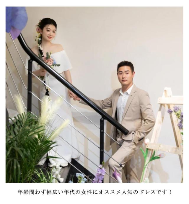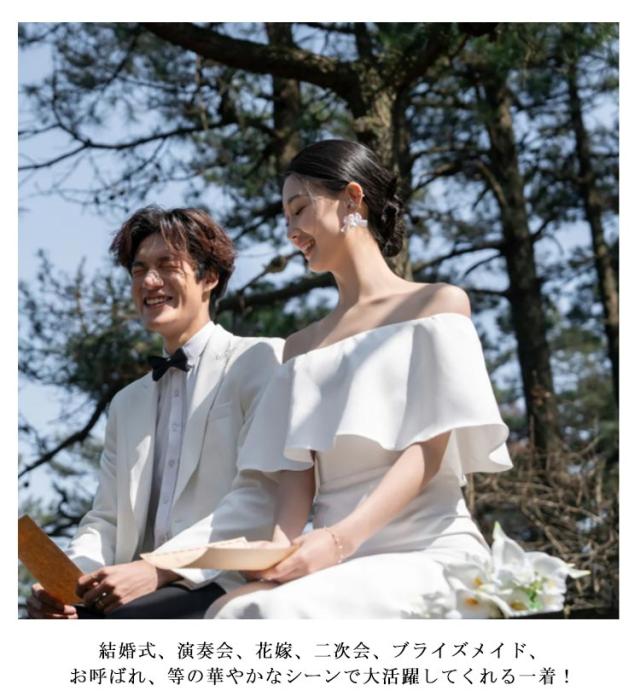 | ドレープを寄せたフリルショルダーのマーメイドドレス。 高めの位置に設定されたウエストが、脚長効果をもたらします! 女性らしいAラインシルエットがポディラインを美しく魅せ細見効果。 年齢問わず幅広い年代の女性にオススメ人気のドレスです! 結婚式、演奏会、花嫁、二次会、ブライズメイド、お呼ばれ、等の華やかなシーンで大活躍してくれる一着! | |