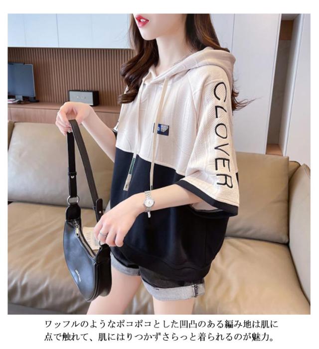 Tシャツ 半袖 半袖パーカー 夏服 夏用 フード付き プルオーバー スウェット プルオーバー tシャツ カットソー パーカー トップス カジュアルtシャツ 薄手 春服 通学 女性 学生 ジュニア 通勤 Tシャツ おしゃれ 20代 30代 40代