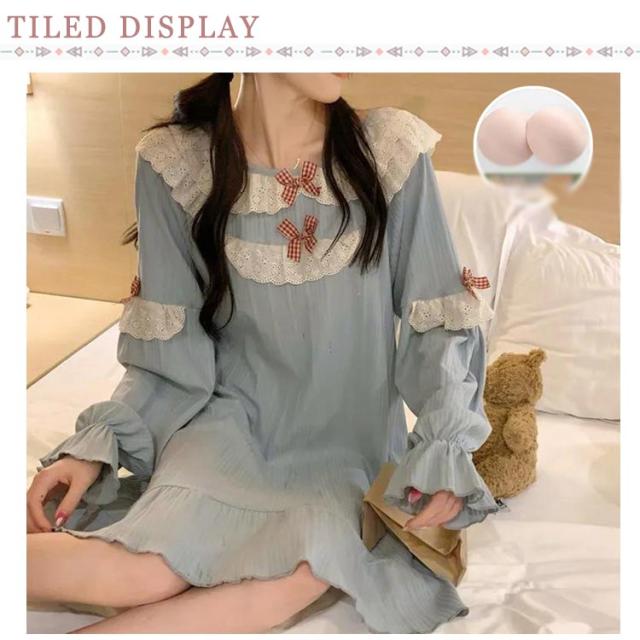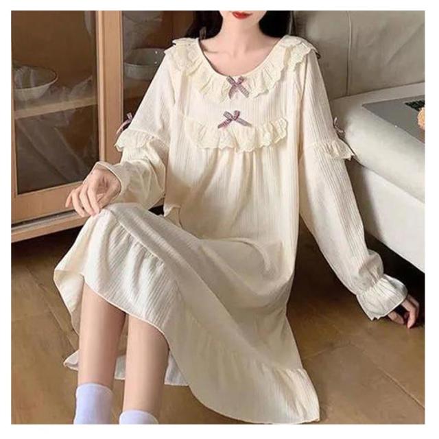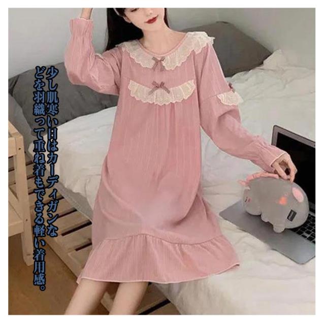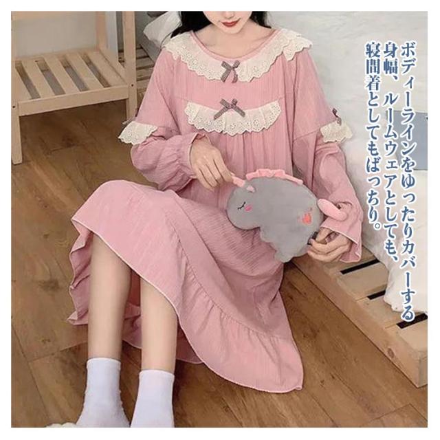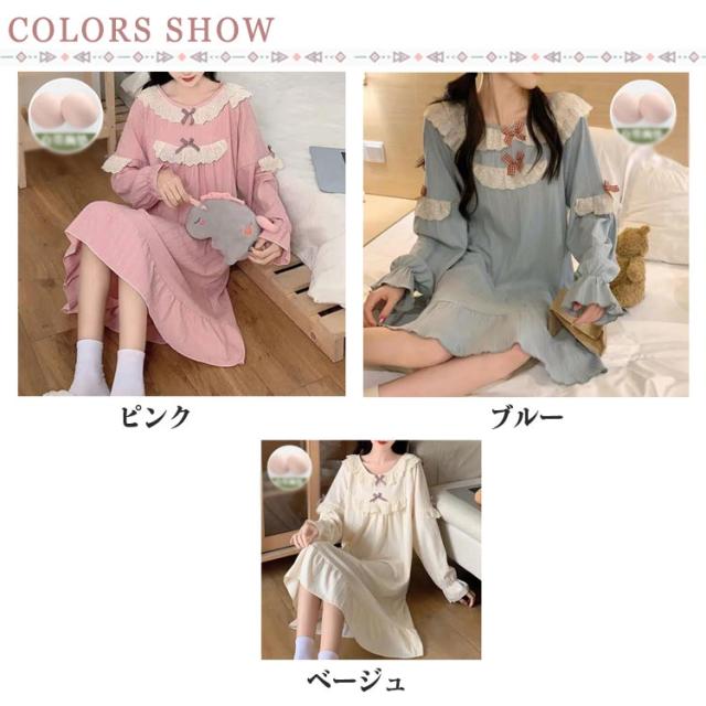 パジャマ ワンピース カップ付き パジャマ コットン 綿 おしゃれ 長袖 部屋着 寝間着 ロング丈 かわいい 胸パッド付き ルームウェア 誕生日 プレゼント 秋 冬