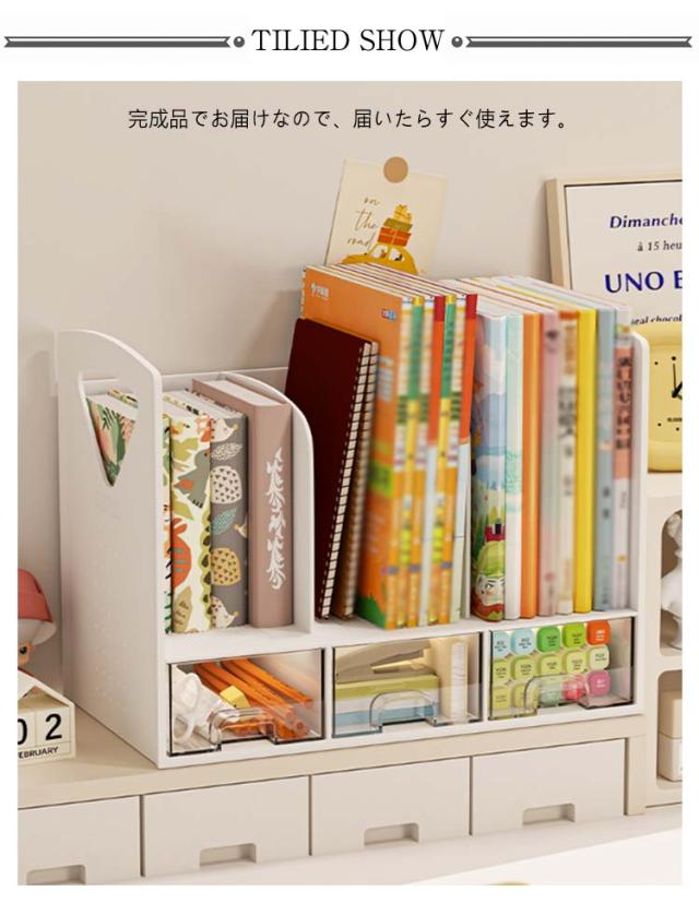 ブックスタンド 小物ケース デスク上置き棚 ブックラック 小物整理 本棚 ブックスタンド 卓上収納 卓上 本立て 書類ホルダー 小物入れ 書類立て 卓上ラック ファイル立て 引き出し 組み立て不要 事務用品整理 シンプル おしゃれ 子供