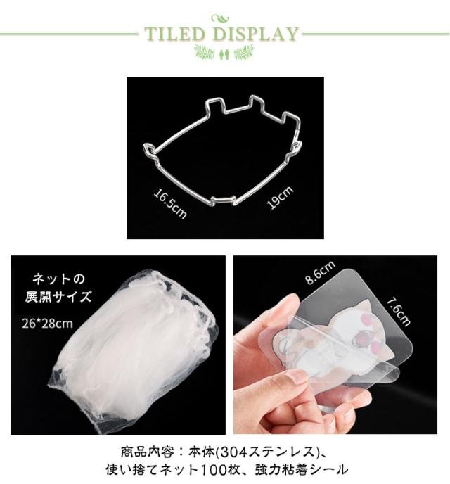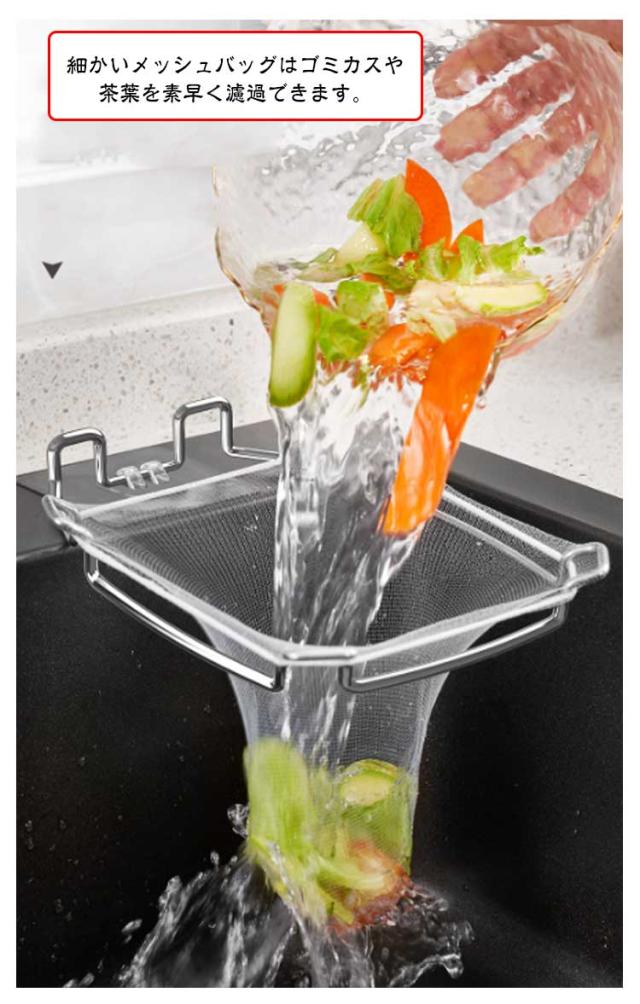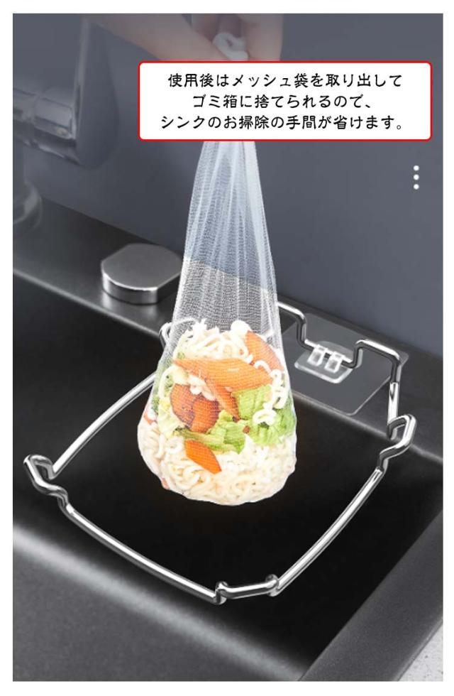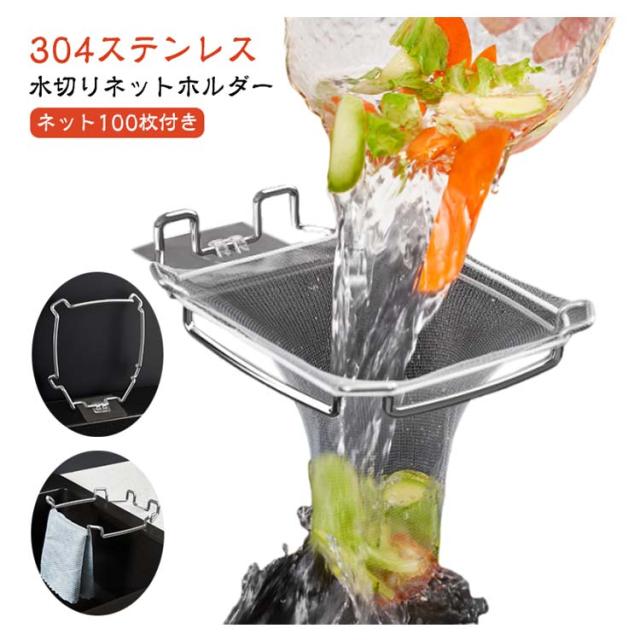 | 【水切りネットホルダー】【304ステンレス】【ネット100枚付き】 商品内容:本体(304ステンレス)、使い捨てネット100枚、強力粘着シール 細かいメッシュバッグはゴミカスや茶葉を素早く濾過できます。 シンクの詰まり、細菌の繁殖、臭いを防ぎます。 使用後はメッシュ袋を取り出してゴミ箱に捨てられるので、シンクのお掃除の手間が省けます。 メッシュは細かく、あらゆる残留物をより分けることができます。 使わない時は布巾掛けやスポンジ台としてキッチン周りを整理。 洗った野菜や果物の水切りカゴとしても使えます。 調理時間を節約します。 折畳設計により、シンクのスペース利用率が向上します。 | |