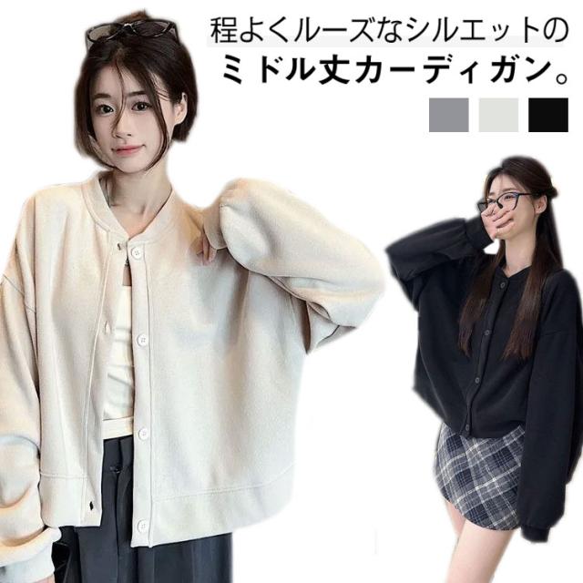 | 程よくルーズなシルエットのミドル丈カーディガン。 ボリュームたっぷりでやや長めの袖が可愛らしさの雰囲気を演出 ボタンを閉めてトップス風に着ても良し、開けて羽織としても。 分厚すぎないため、通年で着用いただけます。 シンプルなデザインなので様々なスタイルにマッチする着回し力抜群のアイテム! | |