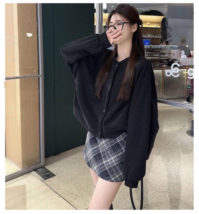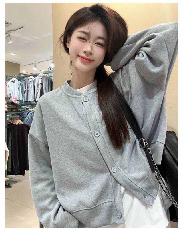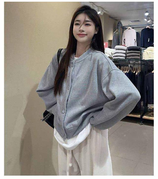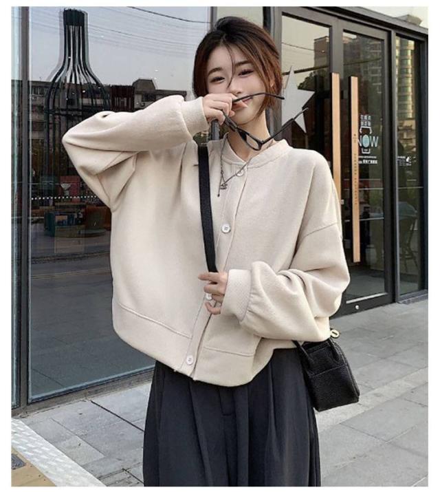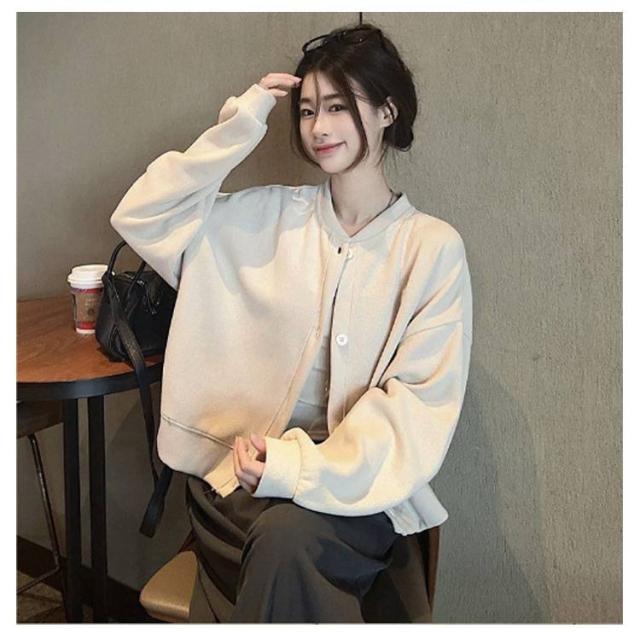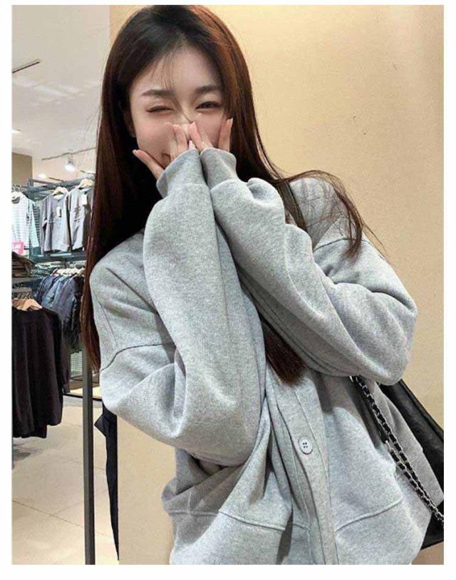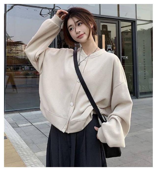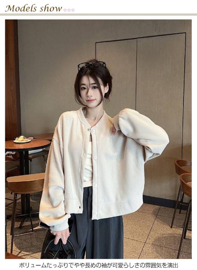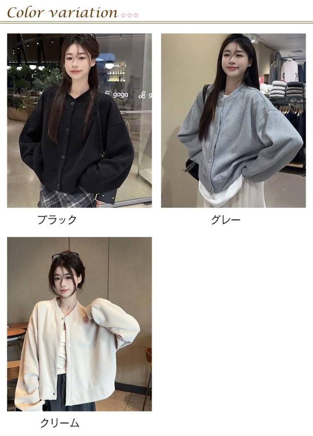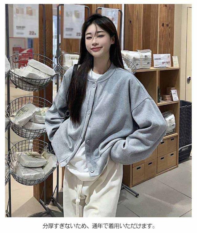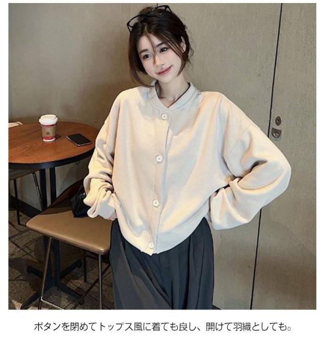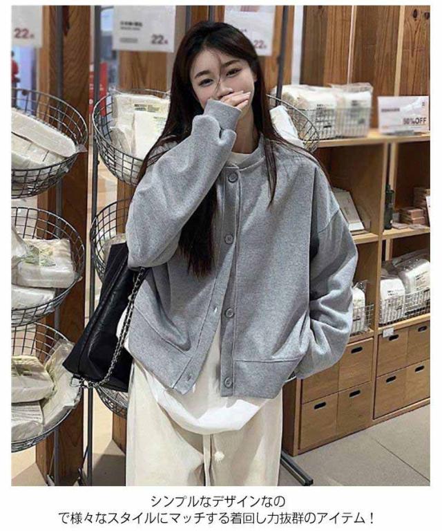 トップス クルーネック カーディガン レディース 体型カバー ボタン トレーナー スウェット 羽織り 女子 ジャケット パーカー ゆったり アウター 長袖 カーディガン 通学 通勤
