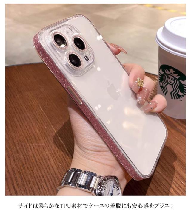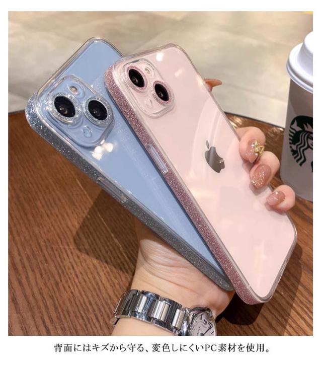 | iPhone15/14/13/12series対応 キラキラ クリアケース サイドとカメラ部分にキラキラ光るラメをあしらったことでさり気なく華やかさをプラス。 背面はクリアなのでiPhone本体のカラーを美しいまま楽しむことができます。 背面にはキズから守る、変色しにくいPC素材を使用。サイドは柔らかなTPU素材でケースの着脱にも安心感をプラス! 機種専用設計の為ケースを装着したままボタン操作や充電が可能。 | |