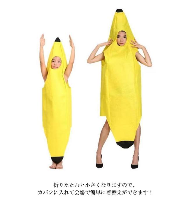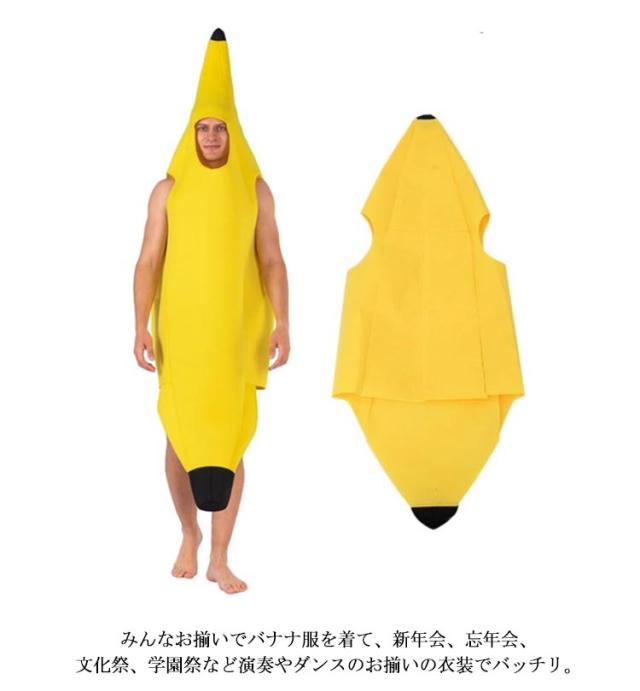 | あっという間に面白いバナナに変身♪ 誰でも簡単に受けます!着るだけでバナナに大変身できるバナナのおもしろ衣装です。 小さなお子様から大人の方まで2サイズ展開。 折りたたむと小さくなりますので、カバンに入れて会場で簡単に着替えができます! みんなお揃いでバナナ服を着て、新年会、忘年会、文化祭、学園祭など演奏やダンスのお揃いの衣装でバッチリ。 ハロウィン、クリスマスパーティ、イベント、演劇服装、学芸会、仮装パーティー、クリスマスパーティー、コミケのコスプレ変装や、演劇、映画、舞台、誕生日、様々な場面で活躍できます。 | |
