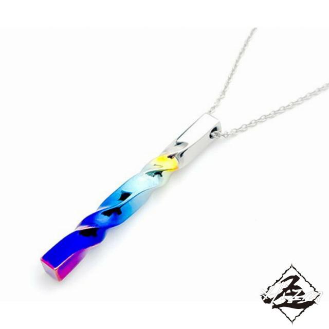 Hizm 流水に空 Large No.5 青×水色×黄×銀 純チタン製 S〜L チェーン付き チタンアクセサリー ペンダント ネックレス 金属アレルギー