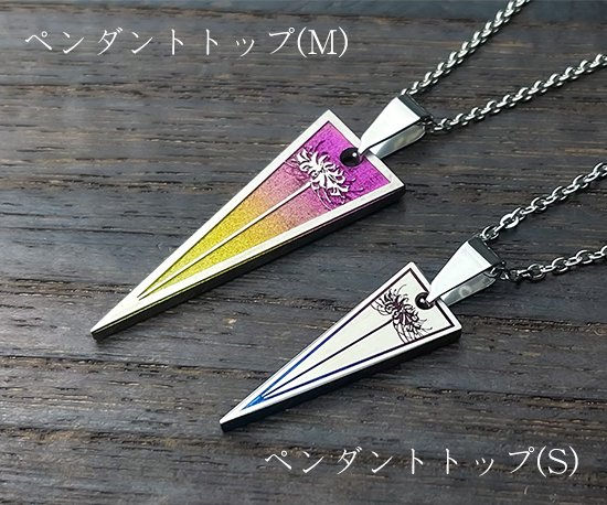 Hizm 楔形ペンダントトップ S 彼岸花 紫に橙 純チタン製 チェーン付き チタンアクセサリー ペンダント ネックレス 金属アレルギー アレルギーフリー