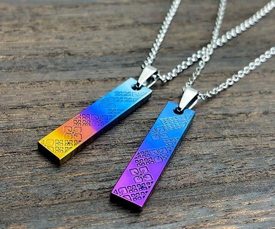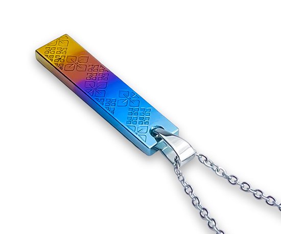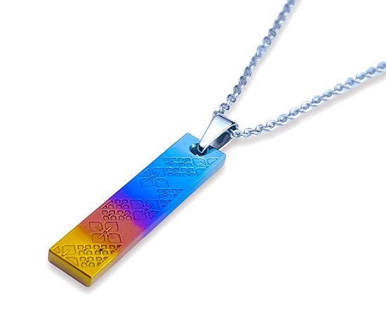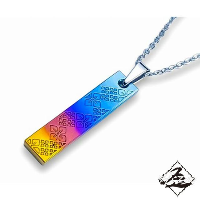 Hizm 札形ペンダントトップ M 黄昏に紫陽花 多色グラデーション 純チタン製 チェーン付き チタンアクセサリー ペンダント ネックレス 金属アレルギー