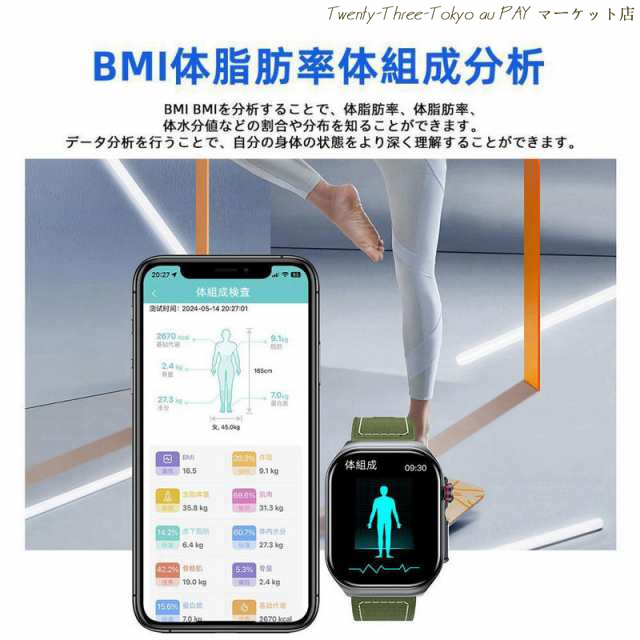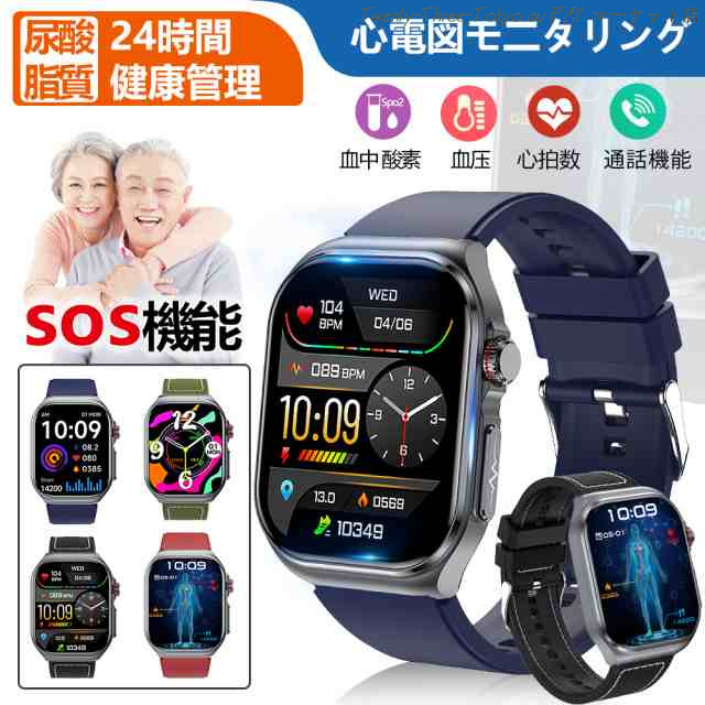 【三太郎の日】スマートウォッチ 日本製センサー SOS機能 2.04インチ大画面 ECG心電図 血糖値測定 24時間体温 血圧 心拍数 血中酸素 睡眠 体組成 日本語