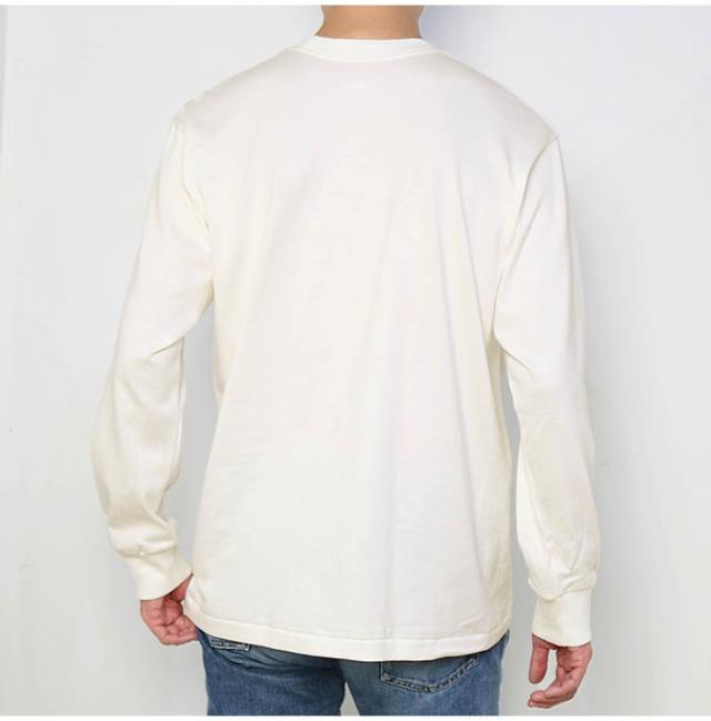 厚みと柔らかさを兼ね備えた7.0オンス。カラー展開は独自製法で生み出したこだわりの白の1色です。 特徴的なラウンド形状のクルーネック。身幅と袖幅にゆとりを持たせたアメリカンスタイルのシルエット。 ストレスを軽減する脇に縫い目のない丸胴編み。首元にネームデザインを身生地同色でプリントするTAGLESS(タグレス)仕様で襟ネームの肌当たりを解消した快適な着心地。 裾部分に採用したブラインドステッチによるクリーンな印象。Hanesのアーカイブをベースにアップデートした、白Tシャツに求められる全ての要素にこだわった"THE BEST OF WHITE-T"(ザ ベスト オブ ホワイト-T)です。袖口はリブ仕様で、たくし上げるアレンジなどスタイリングの幅を広げます。 |
