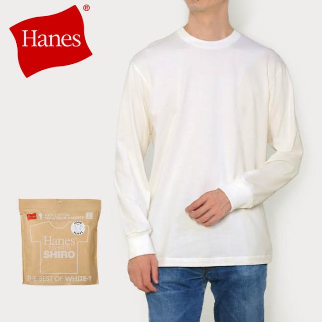 Hanes ヘインズ メンズ ロングスリーブ Tシャツ 長袖 ロンT 無地 カットソー ナチュラル リラックス シンプル フリー 秋冬新作 ホワイト スポーツ きれいめ カジュアル ブランド シンプル 男性 大人 タフ 丸首 白 M L XL LL 春 秋 冬