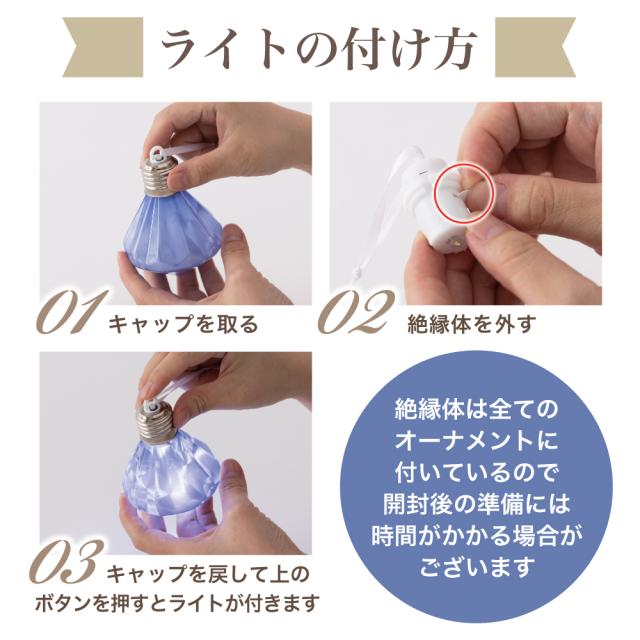オーナメントのカラーバリエーションは3種類。お好みのカラーをお楽しみください。