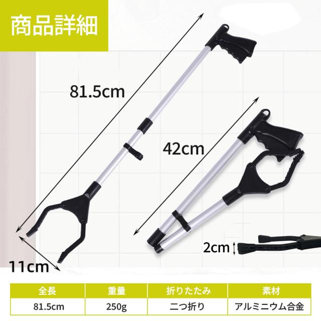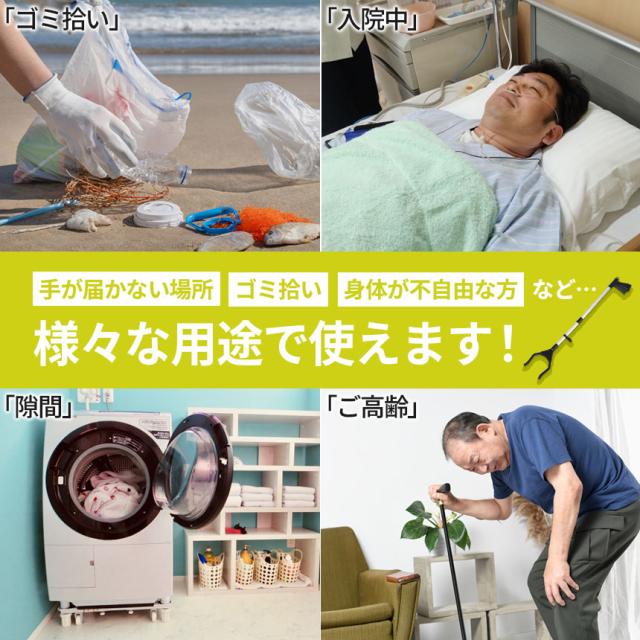 ●ガッチリ掴める●ペットボトルや缶など大きめの物から紙類・タバコ・落ち葉など小さい物もしっかり掴めます!・怪我や病気で入院の際にベッドの上から動かず物を取りたい・ご高齢や身体の不自由がありかがまずに物を取りたい・洗濯機の裏や下など、手の届かない隙間に落ちてしまった物を取りたい・高いところの物を取りたい・ゴミ拾いのためにロングなトングが欲しいという方におすすめ!様々な用途で使えます!