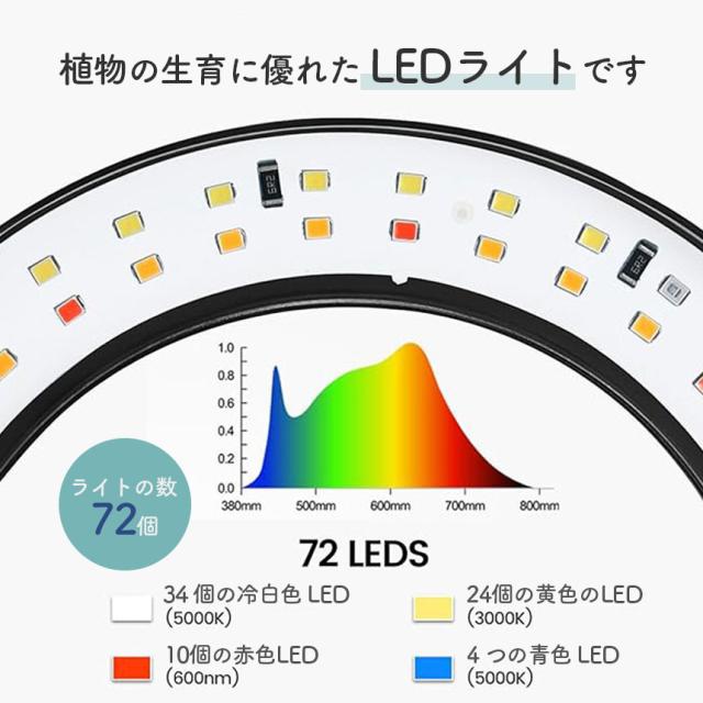 植物育成ライト LED タイマー 植物育成LED 観葉植物育成ライト 10階段調光 72LEDランプ 太陽光 室内栽培ライト 光補足 日照不足解消 植物成長を促進 自動オン/オフ タイミング定時機能 高さ調節可能 低消耗 省エネ 植物ライト 植物育成ランプ 観葉植物用ライト 簡単