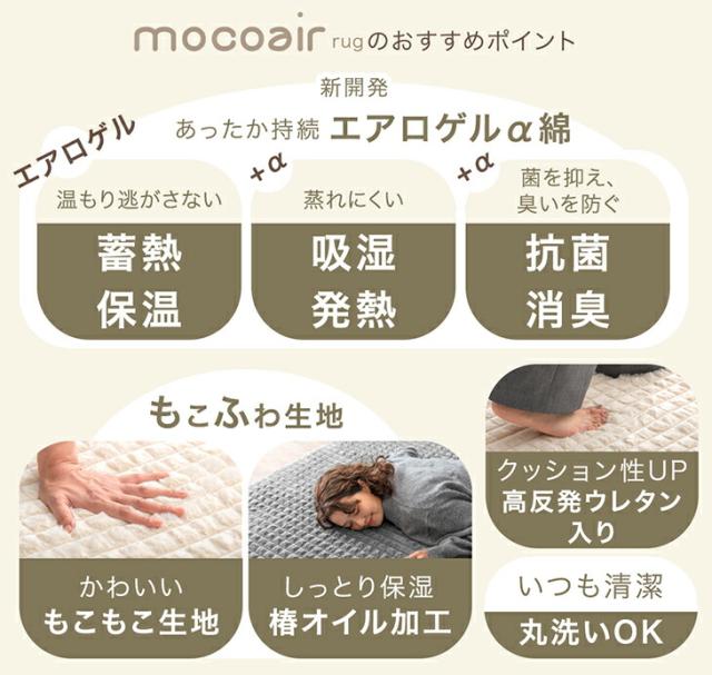 【在庫一掃プライス】 新素材“エアロゲルα” 洗えるラグ ラグ mocoair 240×185 滑り止め ラグマット カーペット 3畳 長方形 横長 絨毯 厚手 ふわふわ ふかふか 冬 抗菌 防臭 北欧 おしゃれ 可愛い