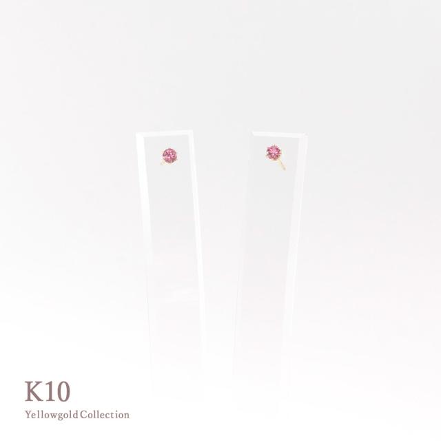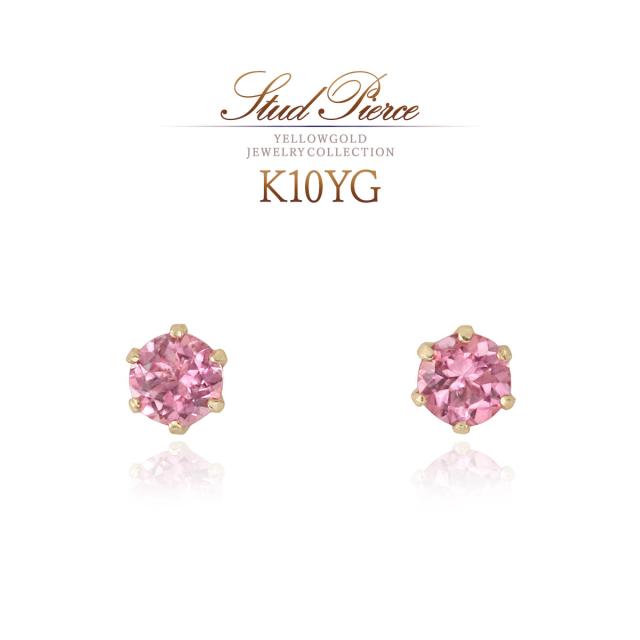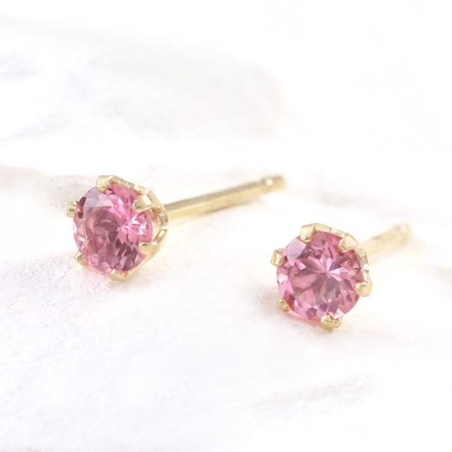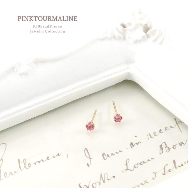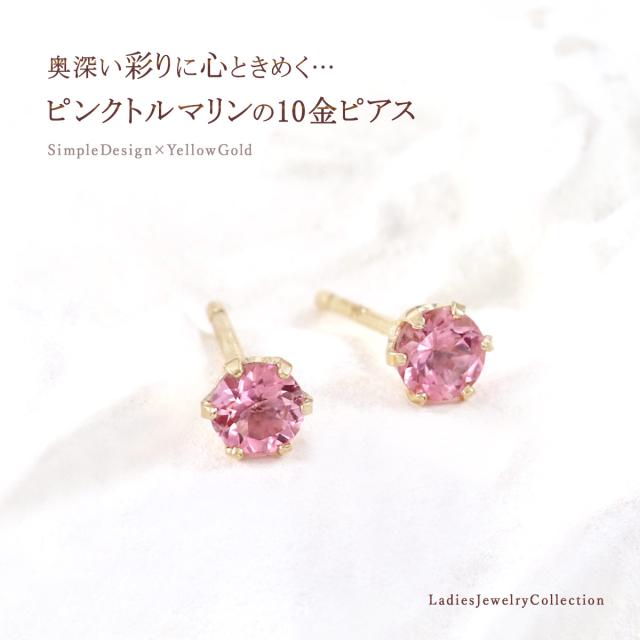 ピアス レディース かわいい 小さめ ピンクトルマリン 10金 イエローゴールド 10K K10 宝石 誕生日 プレゼント 記念日 ギフト 3mm 小さい 小ぶり プチ ミニピアス ピンク トルマリン セカンドピアス おしゃれ 一粒 女性 彼女 10月 誕生石 本物 天然石 ホワイトデー お返し