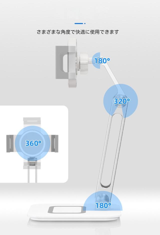 タブレットスタンド 卓上用 スマホスタンド タブレット アーム スタンド アイパッドスタンド pcスタンド 横/縱き 安定 揺れない 360回転