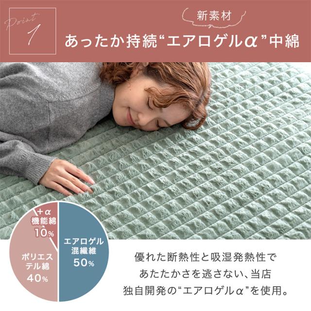中綿:エアロゲルα(エアロゲル綿30%、吸水マイクロ綿60%、吸湿発熱/抗菌防臭綿10%)