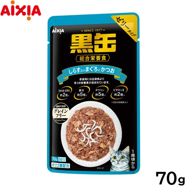 アイシア キャットフード 黒缶パウチ しらす入りまぐろとかつお 70g