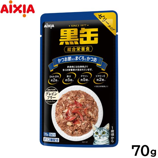アイシア キャットフード 黒缶パウチ かつお節入りまぐろとかつお 70g