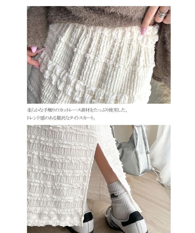 クラシカルエルフ春新作 ボトムス スカート レディース ジャガード レース タイトスカート スリット 美脚魅せ Iライン ワードロープ ロング カットレース 美シルエット スタイルアップ オールシーズン 大きいサイズ 2026ss ce1360001