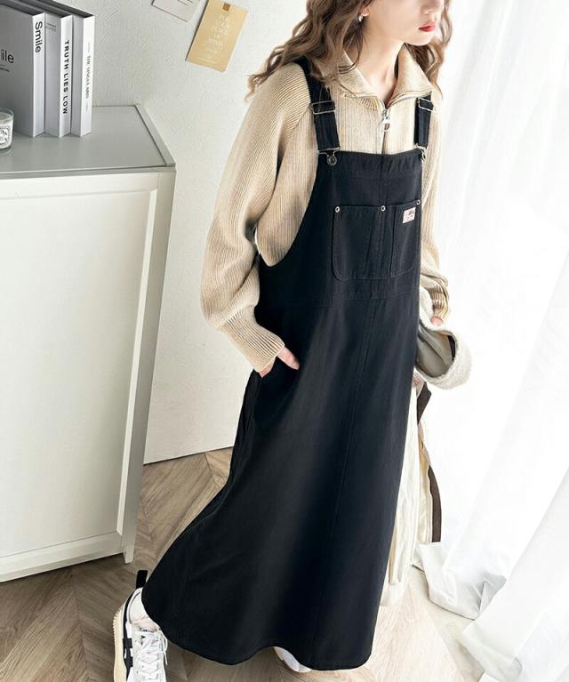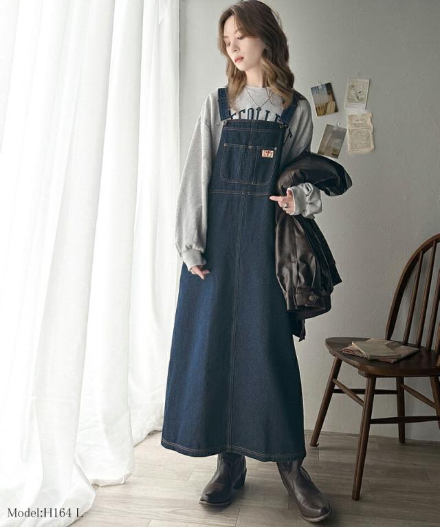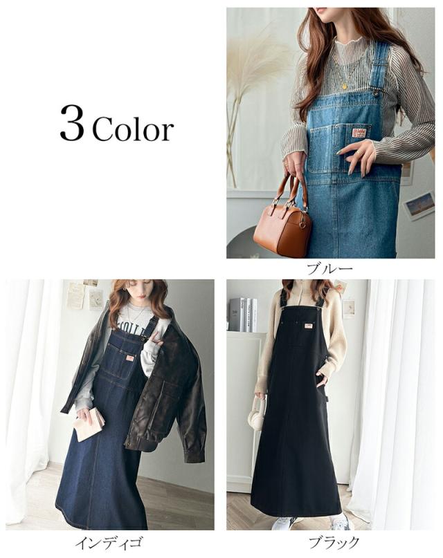 ★《Javaジャバコラボ》大人のリラックスカジュアル。綿100%ペインターロングデニムジャンパースカートサロペット★