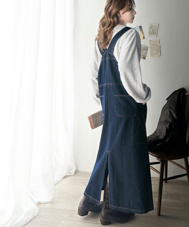 クラシカルエルフ冬新作 javaジャバコラボ オールインワン サロペット レディース 綿 100% ペインター ロング 縦落ち デニム ジャンパースカート 肩紐 調節可能 裾スリット ヴィンテージライク 大きいサイズ 2024aw jv1070099