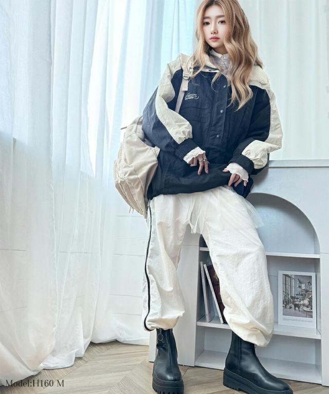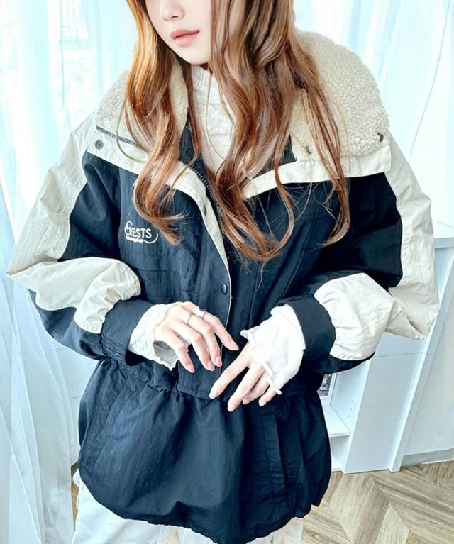 クラシカルエルフ春新作 java ジャバコラボ アウター ジャケット レディース 裏 キルティング 配色 レトロ ハーフジップ ブルゾン ナイロン ストリート ゆるっと オーバーサイズ メンズライク 大きいサイズ 2026ss jv1260212