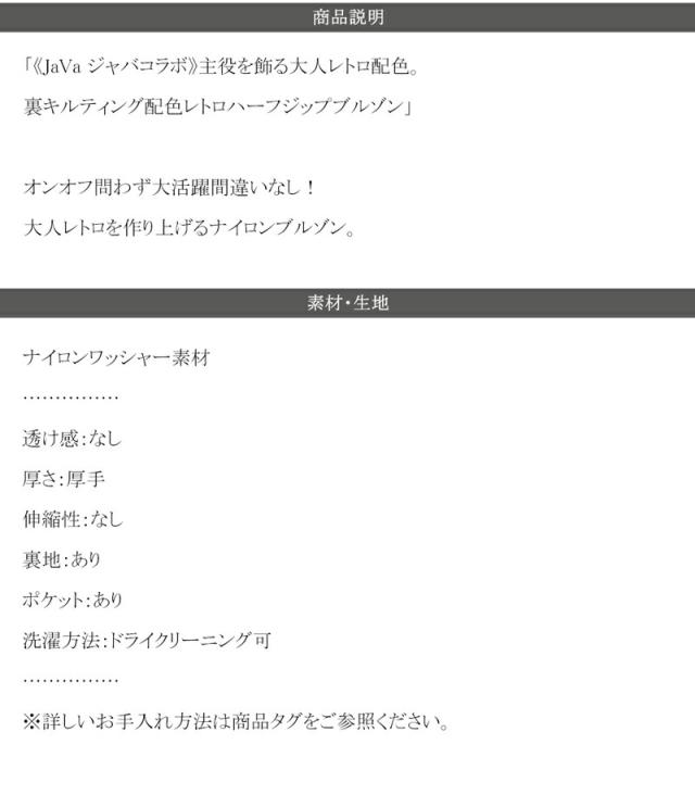 ★《JaVa ジャバコラボ》主役を飾る大人レトロ配色。裏キルティング配色レトロハーフジップブルゾン★