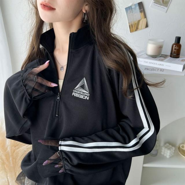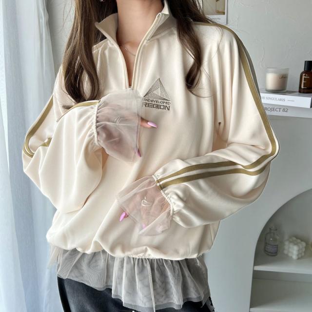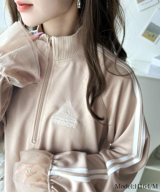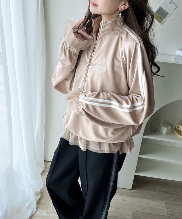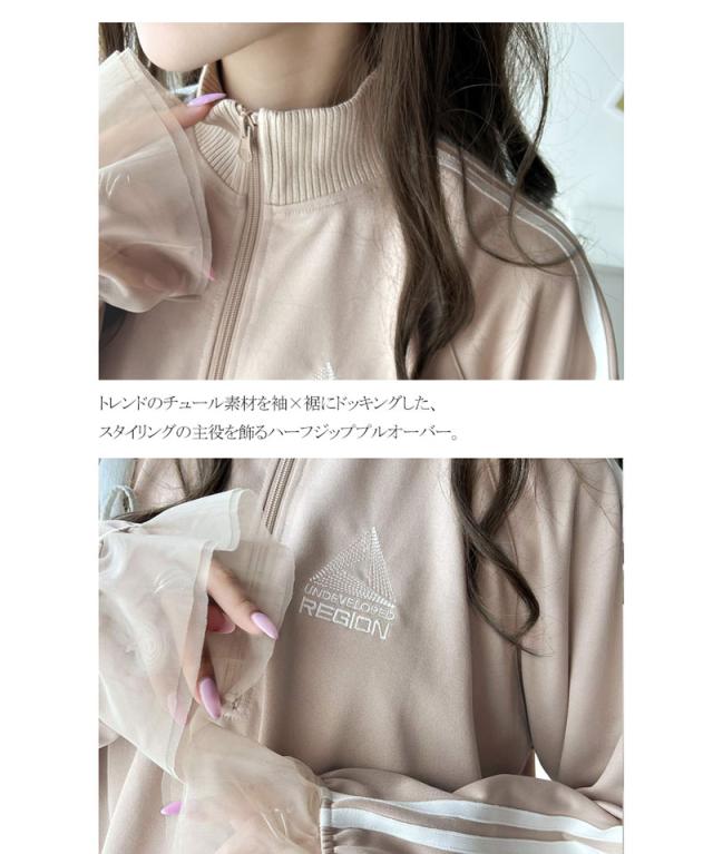 クラシカルエルフ春新作 トップス ハーフジップ レディース チュール 刺繍 アノラック サイドライン ワンポイント スポーツ ドッキング アウター オーバーサイズ ゆったり 長袖 大きいサイズ 2026ss ク ce1260310