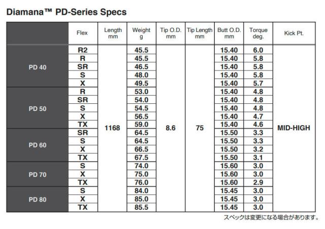 ・同一重量帯のフレックス間の重量・バット径差、また40-80g台スペックのバット径差を大幅に縮小。